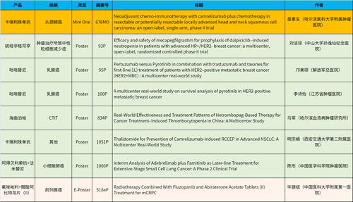 在头颈肿瘤、乳腺癌、肺癌、前列腺癌等多个疾病领域,卡瑞利珠单抗、阿得贝利单抗、吡咯替尼、氟唑帕利、法米替尼、醋酸阿比特龙片(II)等抗肿瘤新药相关研究一共入选了1项简短口头报告、4项壁报展示和1项电子壁报,彰显了ag真人国际官网医药强劲的研发实力。此外,ag真人国际官网医药自主研发的血小板生成素受体激动剂(TPO-RA)海曲泊帕在肿瘤治疗所致血小板减少领域、新一代长效G-CSF产品硫培非格司亭在肿瘤治疗所致中性粒细胞减少症领域各入选1项壁报展示。